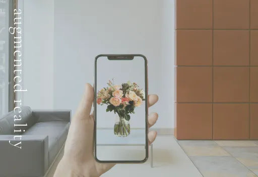 お手持ちのスマホで花や装飾品を試し置きできるAR(拡張現実)機能と商品をご紹介。