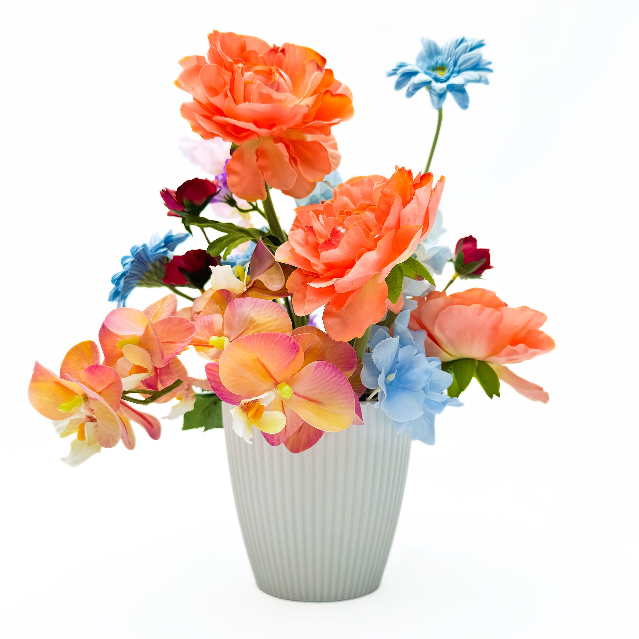いつも周囲を笑顔にしてくれるお母様に、元気カラーオレンジの花々を贈り、笑顔になってもらいましょう。<付属品の鉢のカラーはお選び頂けません。掲載写真のホワイトカラーでお届け致します>