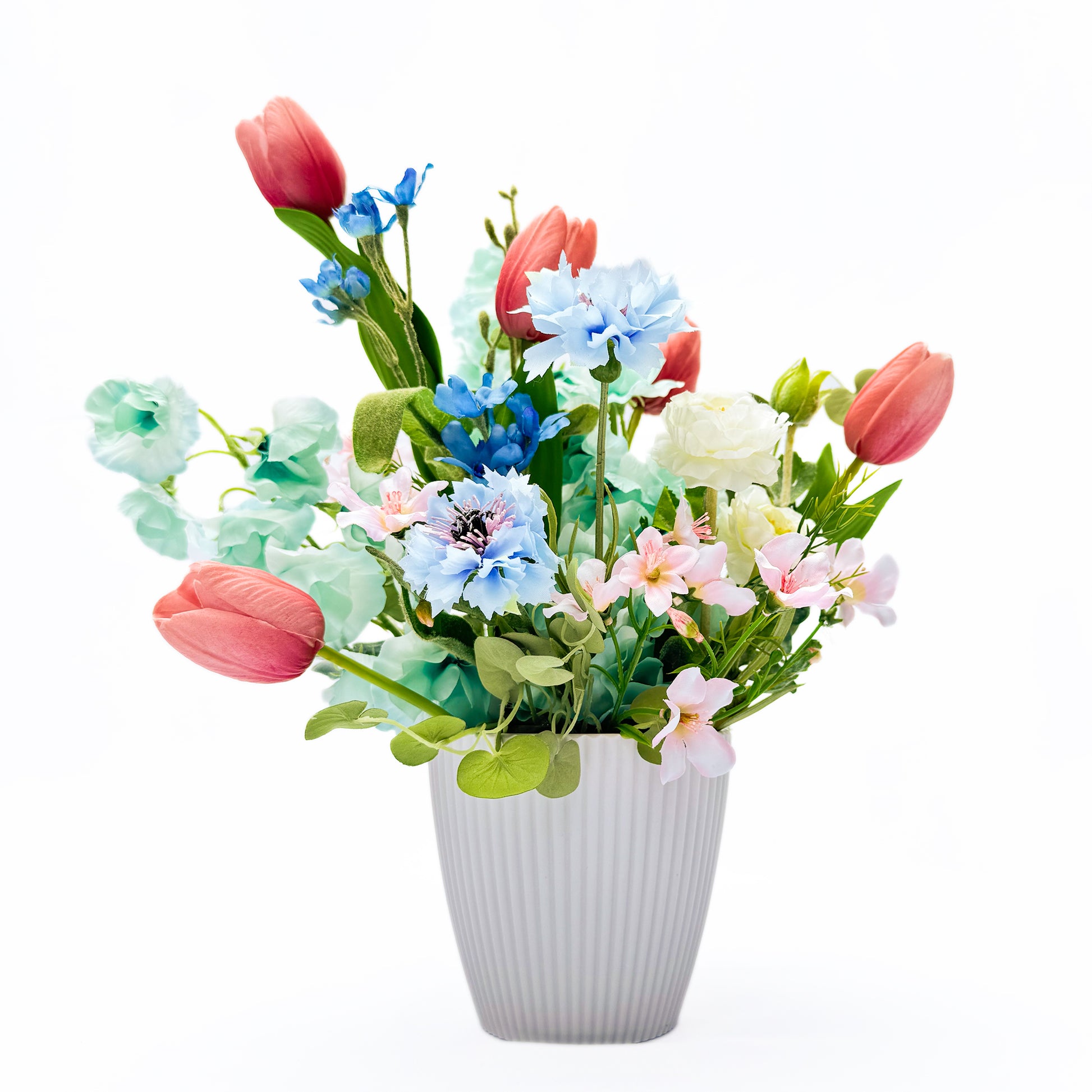 - 花材:チューリップ/スイートピー/スカビオサ/ブルースター/ニゲラ等