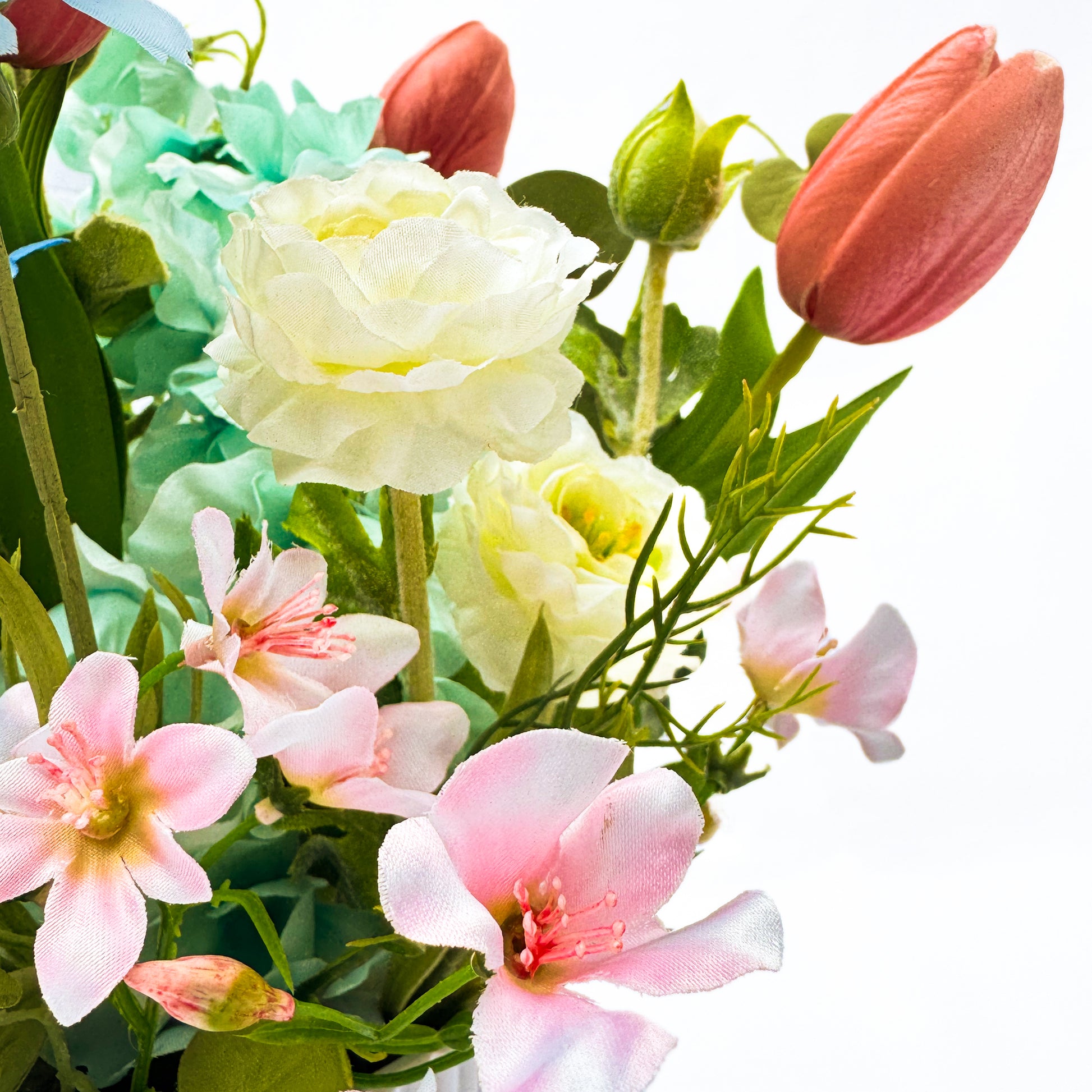 春の心地よさを感じさせるパステルカラーの花々は、多くの女性を虜にしそうな可愛さに満ちたアレンジメントです。