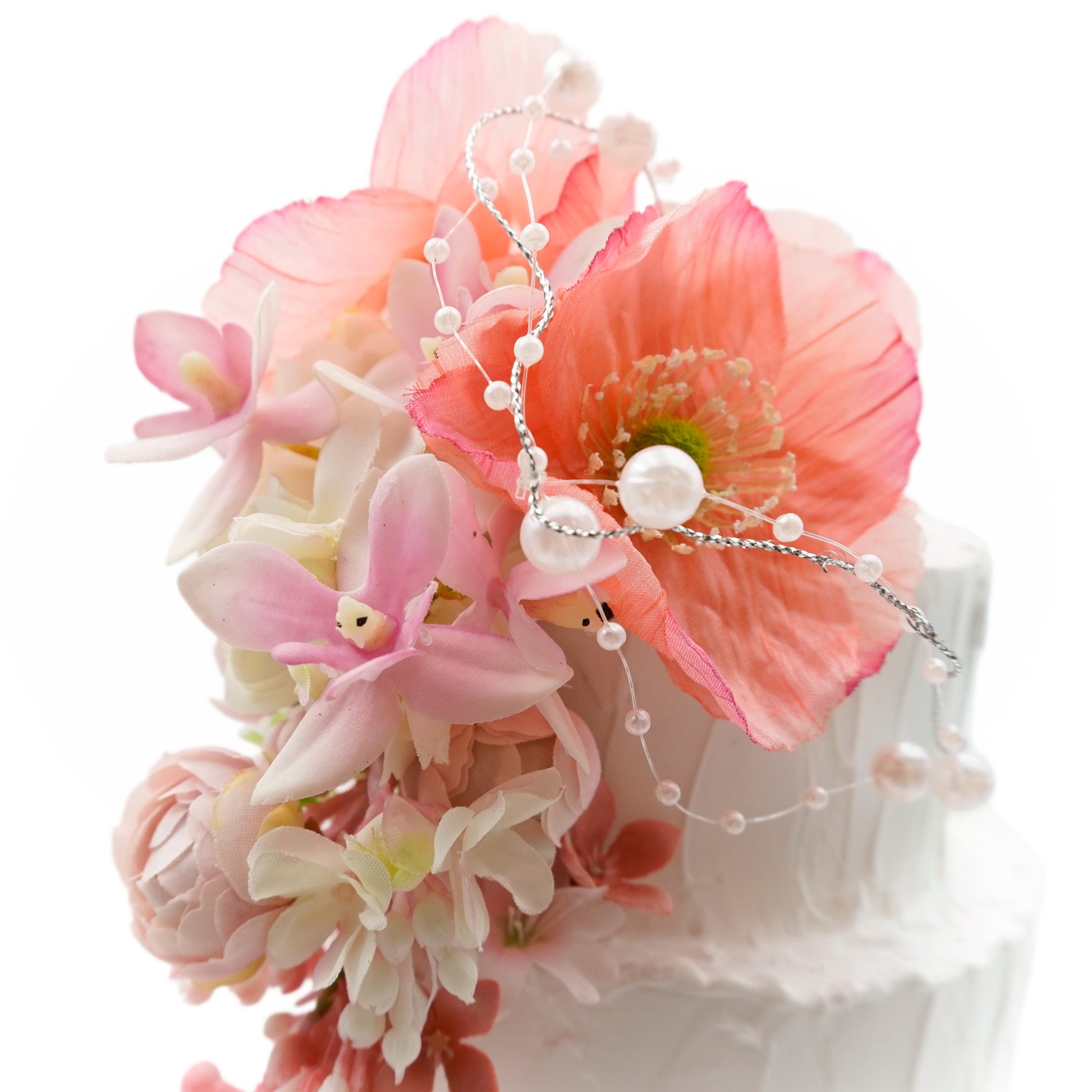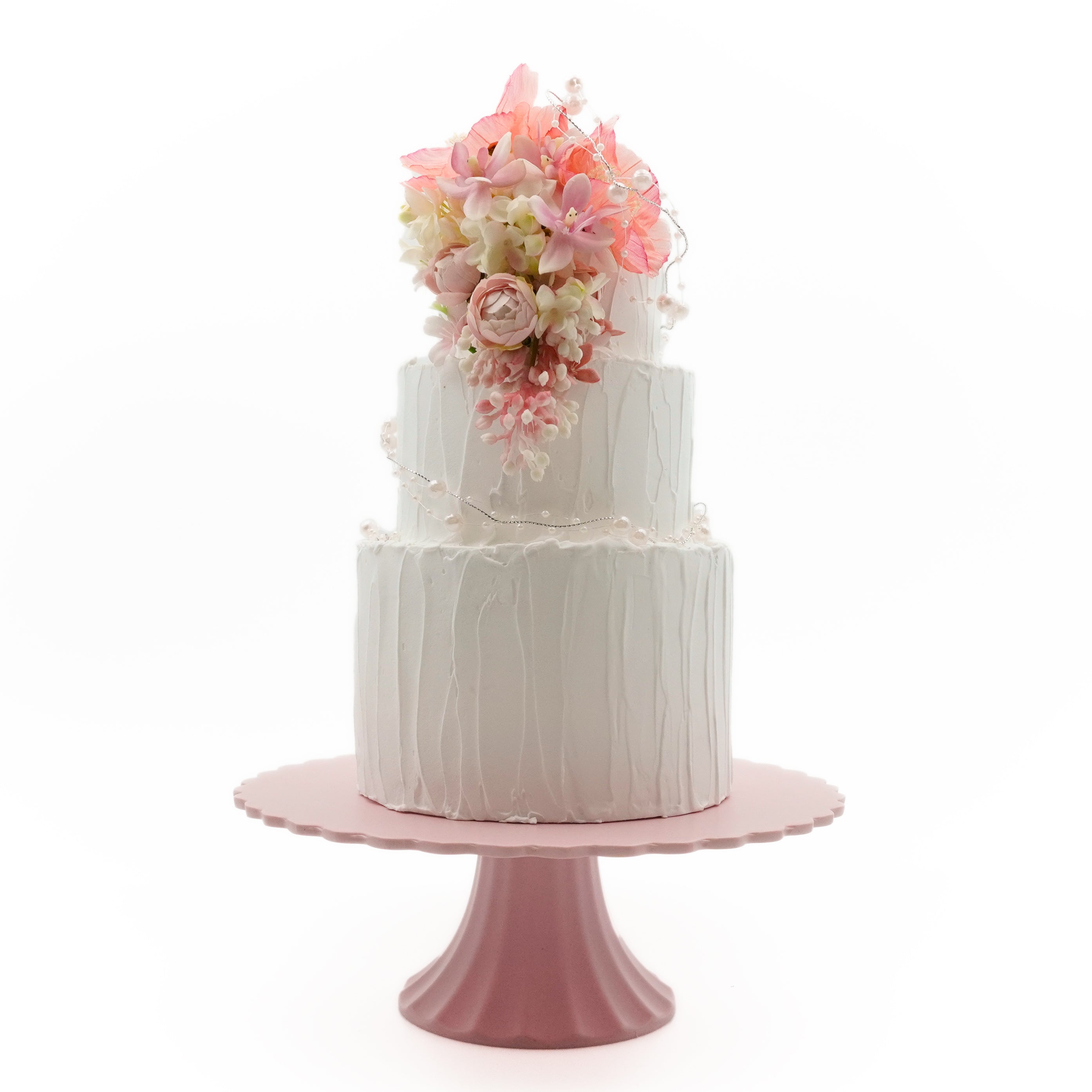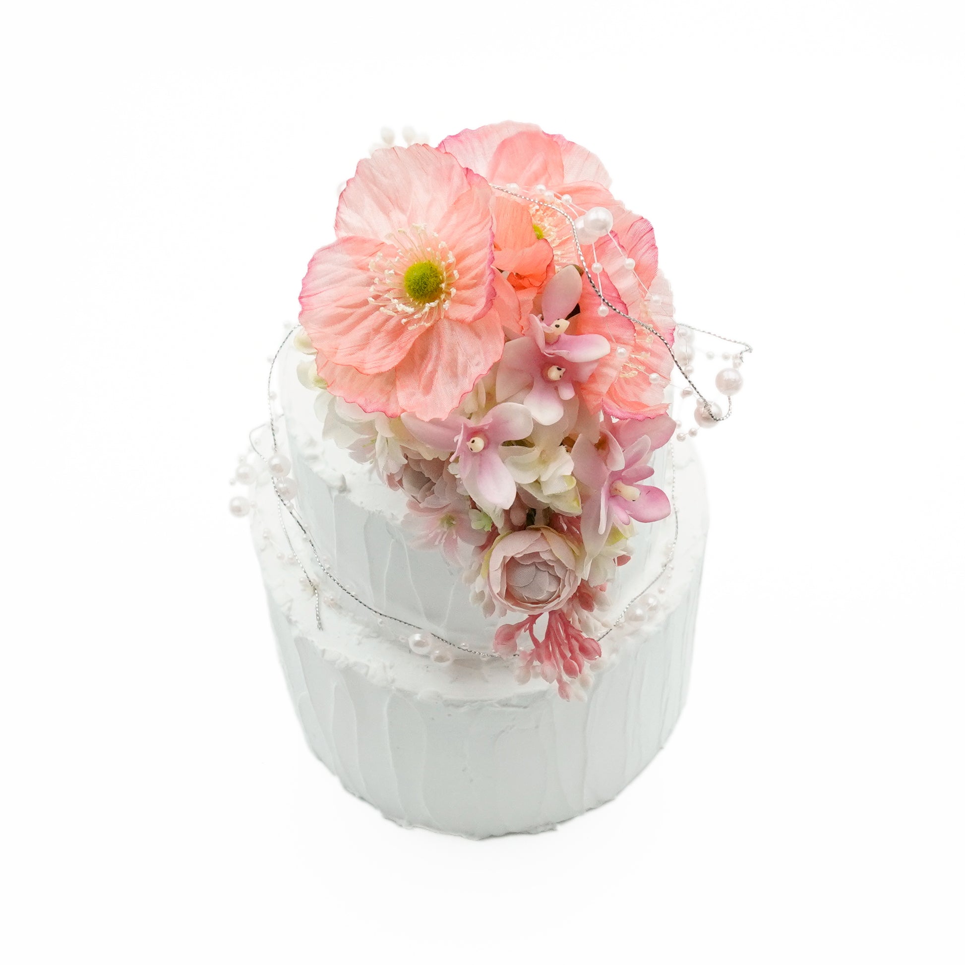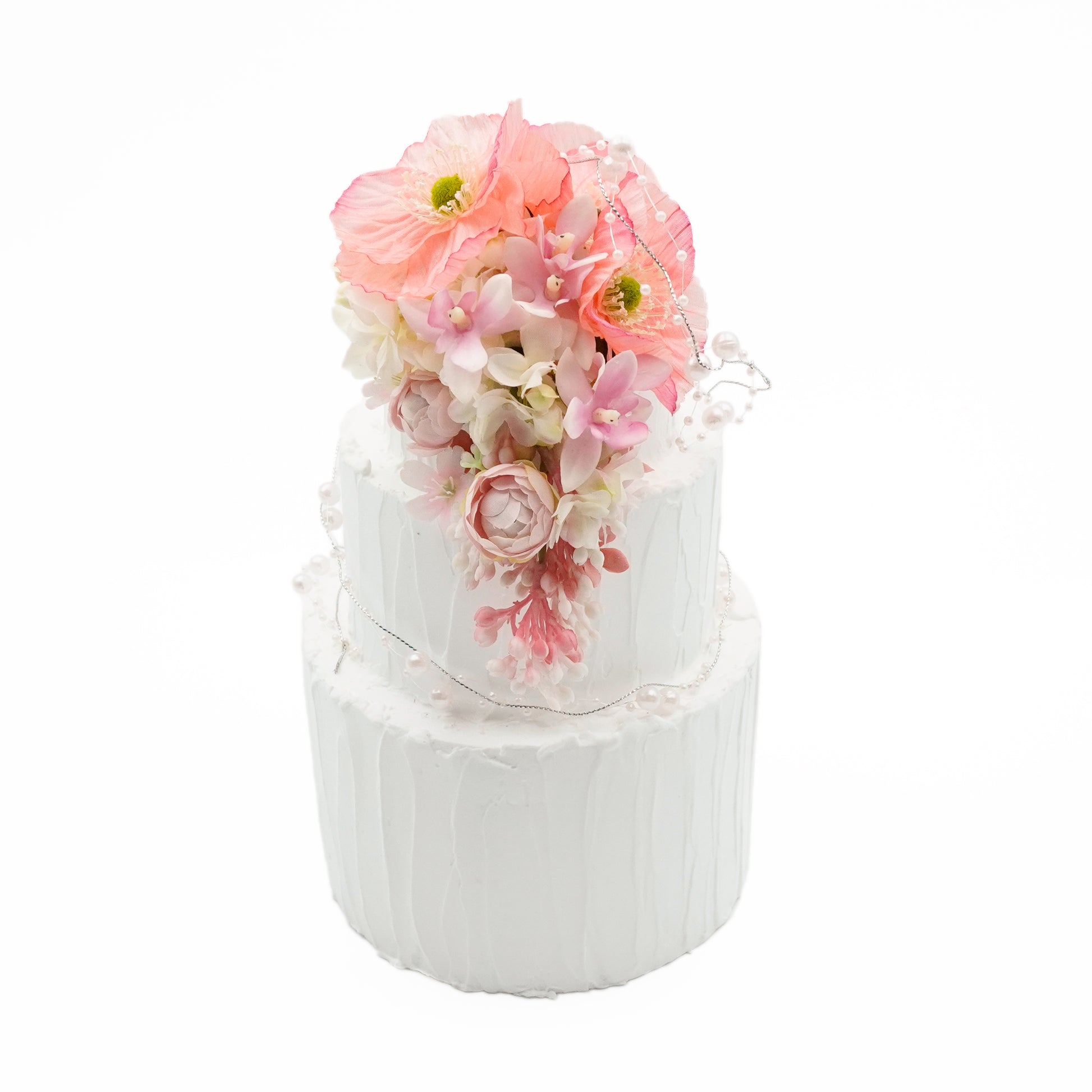 まるでブーケを抱えた花嫁さんのように、艶やかなカレンラナンがデコレートされたホワイト3段クレイケーキ。花言葉が「晴れやかな魅力」「華やかな魅力」であるカレンラナンはその言葉どおり、そこにいる全ての人を引き付けるような存在感です。特に春から夏におすすめしたいこのオブジェは、ブライダルパーティなど祝福シーンで、映えアイテムとして活躍することでしょう。<注:ケーキ台は付属しません。この商品は食べられません>