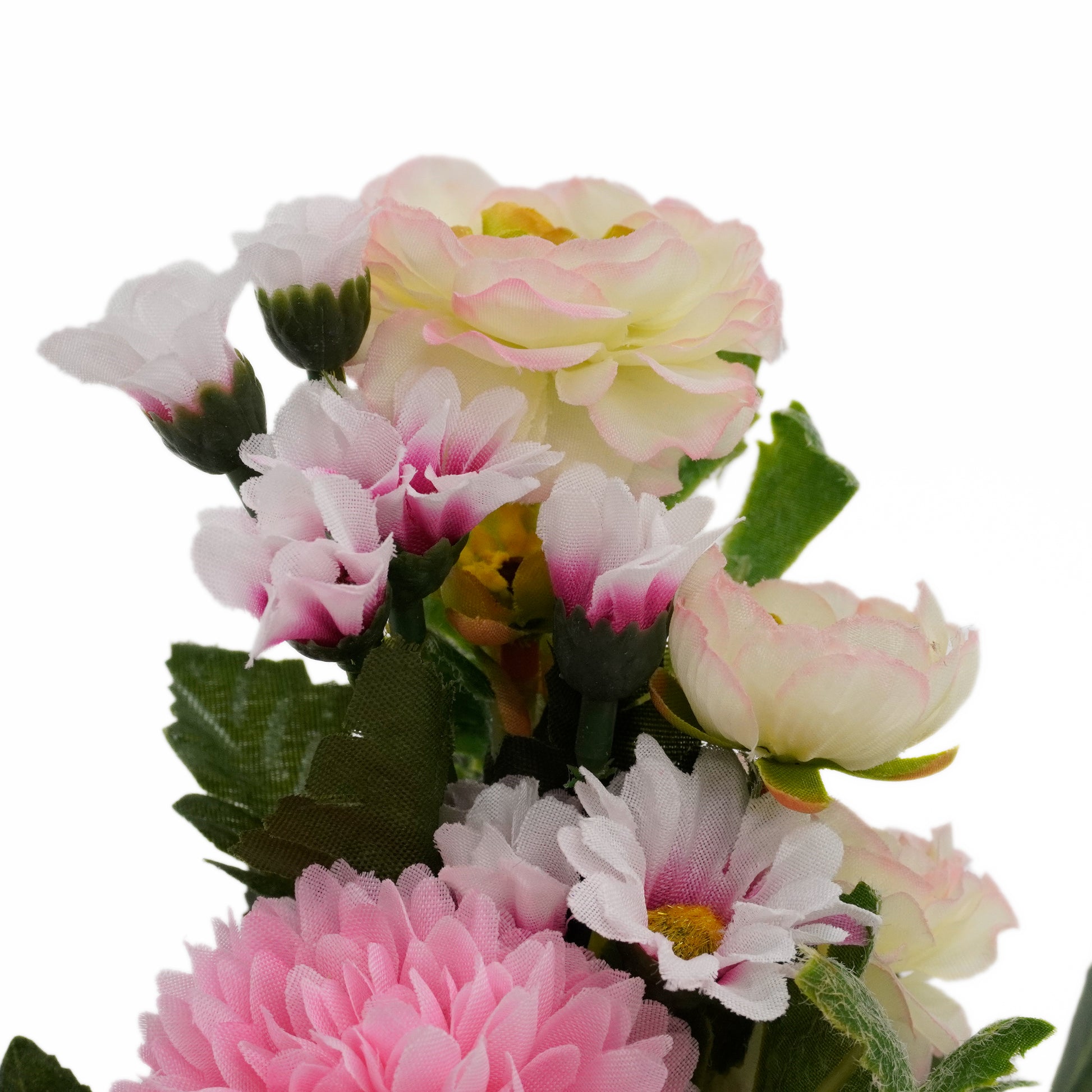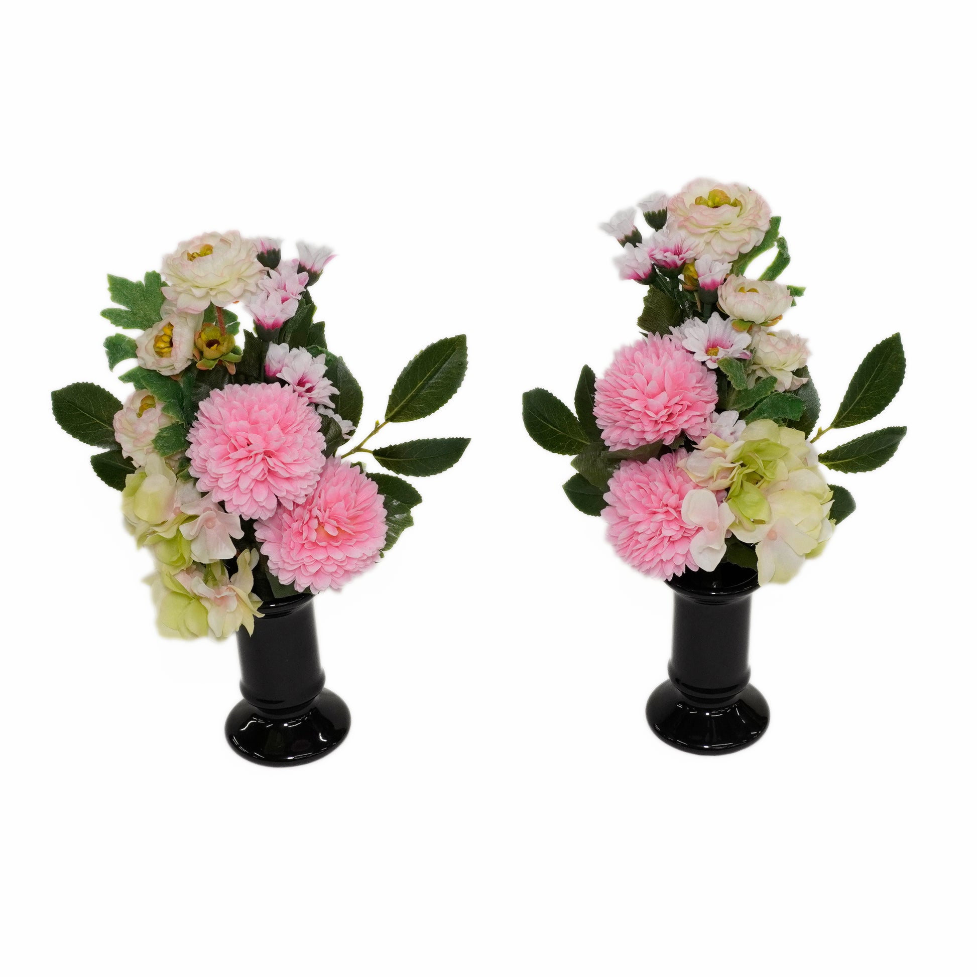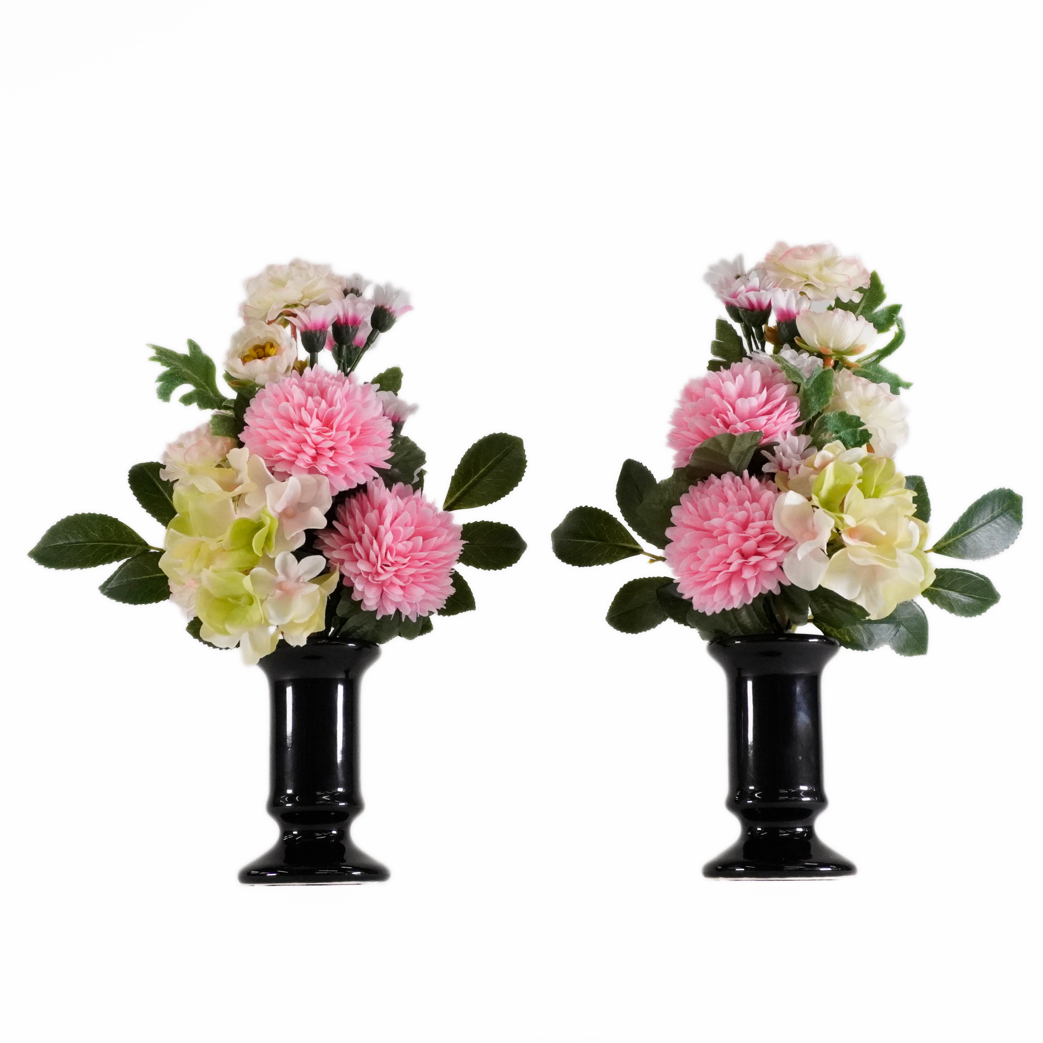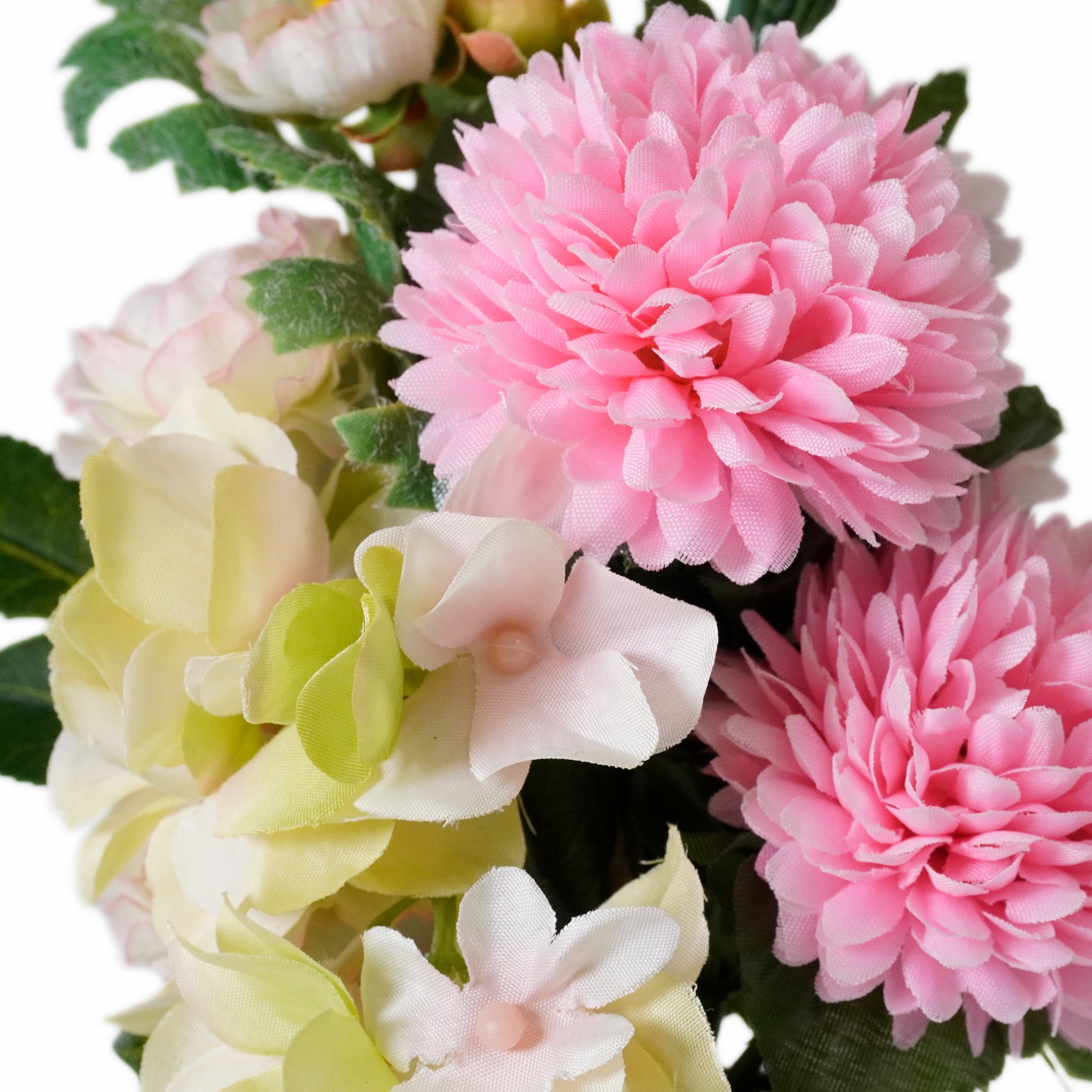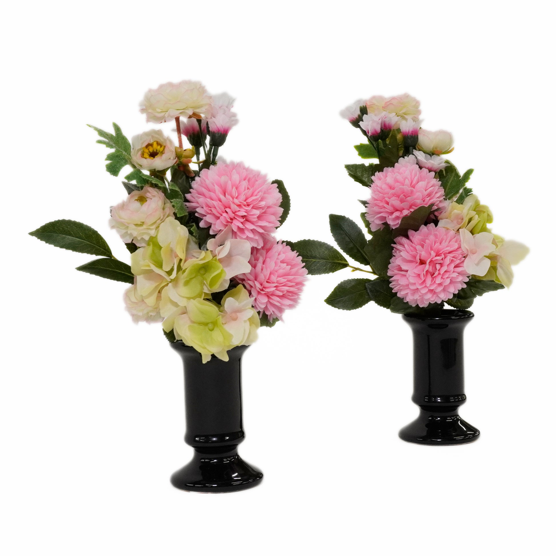 現代のインテリアや仏具にもマッチする華やかな仏花です。生花は夏場や長期不在時に枯れてしまったり、臭いの心配がありますが、アーティフィシャルフラワーは美しさそのままで、お手入れが手軽です。アリスハイドレンジア、マム、小菊、ラナンキュラスなど様々な花が組み合わされ、上品な雰囲気を醸し出します。仏様への最高の敬意を込めた花々で心を癒します。生花を頻繁に買いに行けない高齢の方や、お彼岸やお盆をはじめとした仏壇などに重宝するアレンジメント。