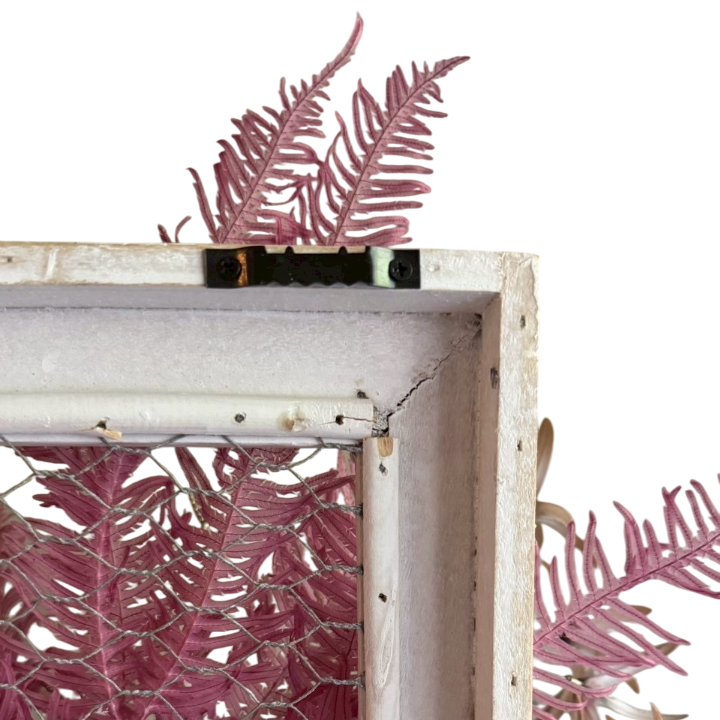 - 花材:ローズ、ピンクシダ、ヒカゲノカズラ、シダ ・その他:フレーム、網