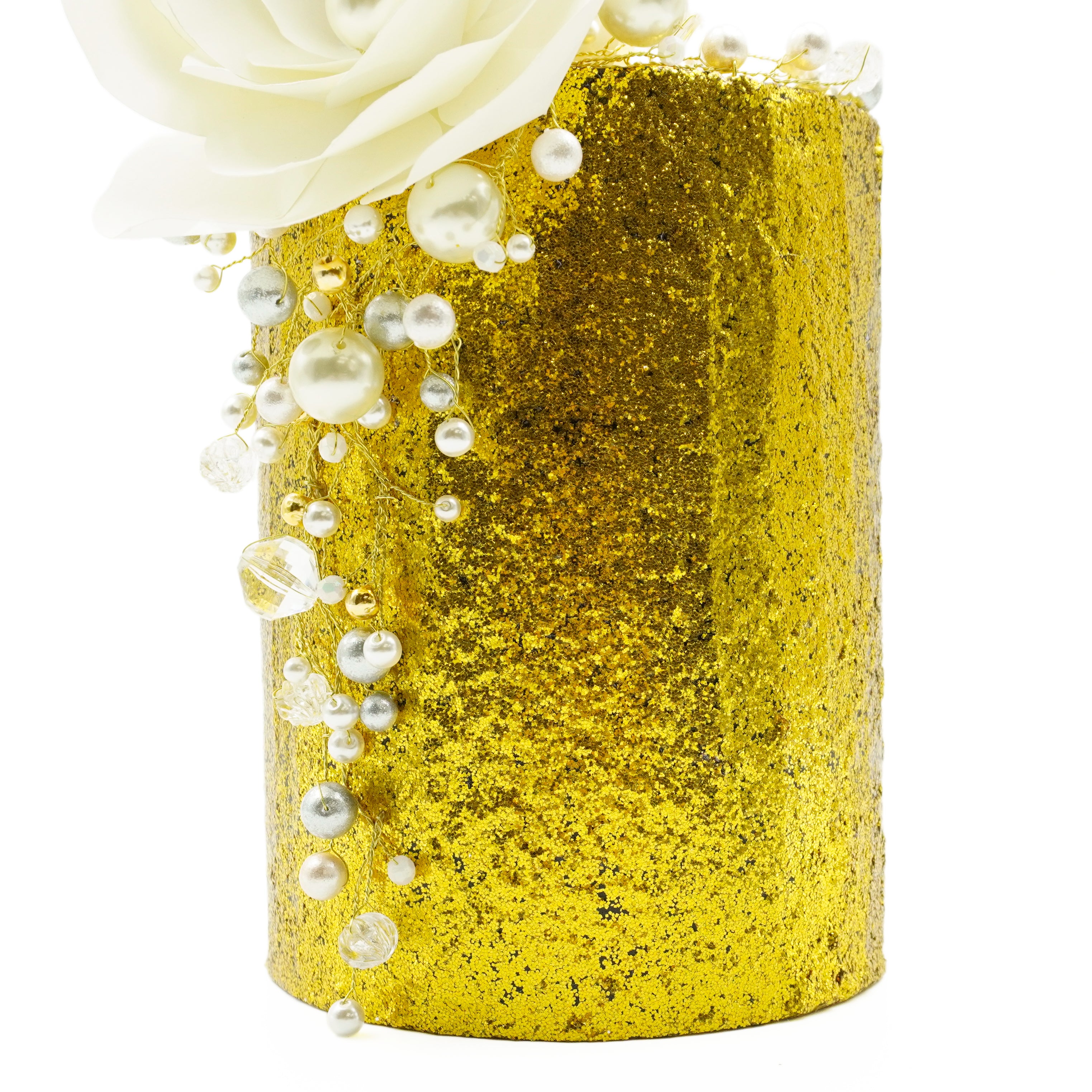 - スチロール/造花(ペーパーフラワー)/パールビーズ/金ラメ
