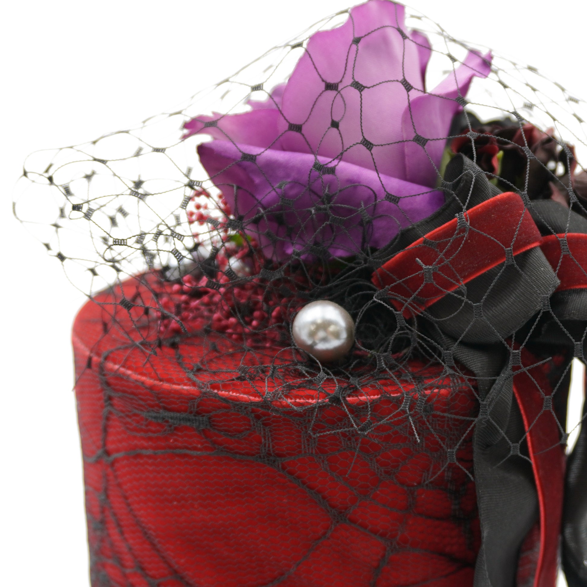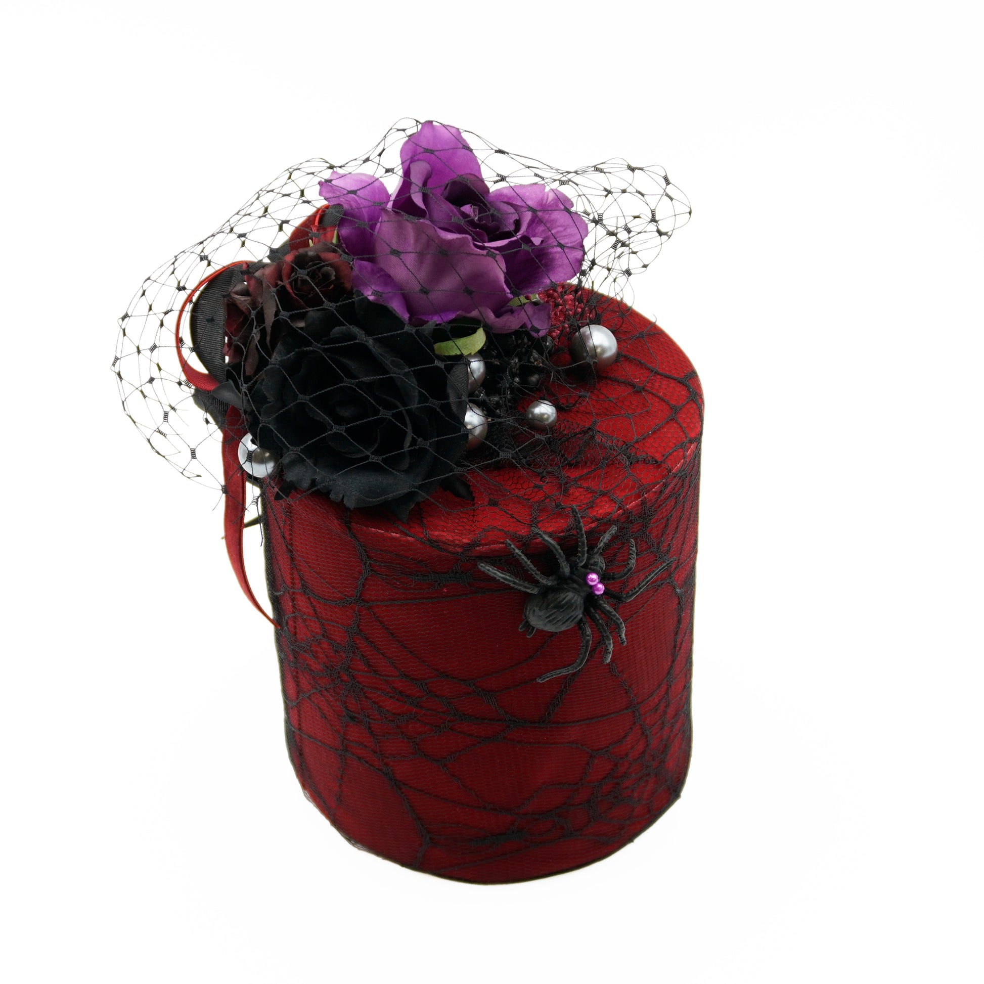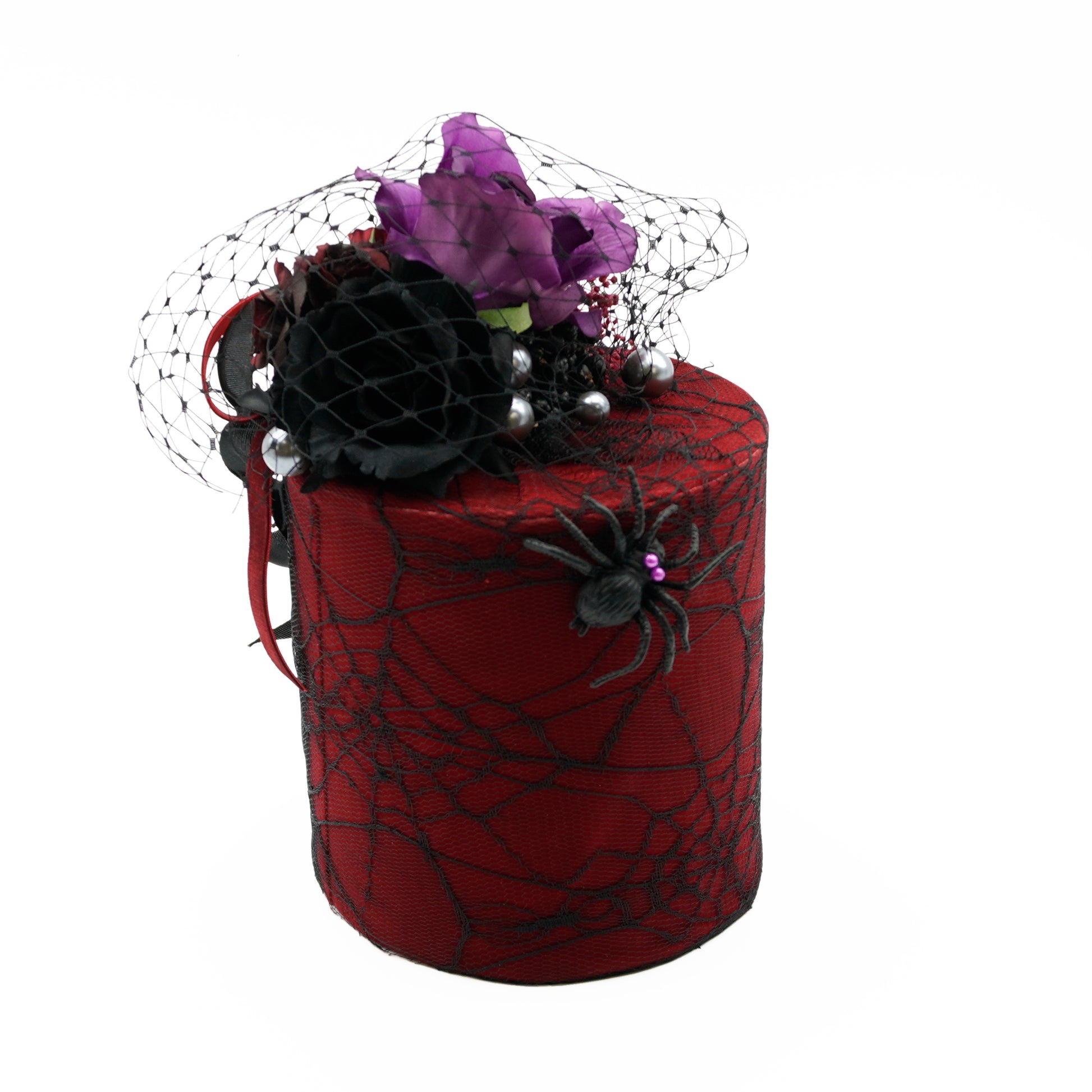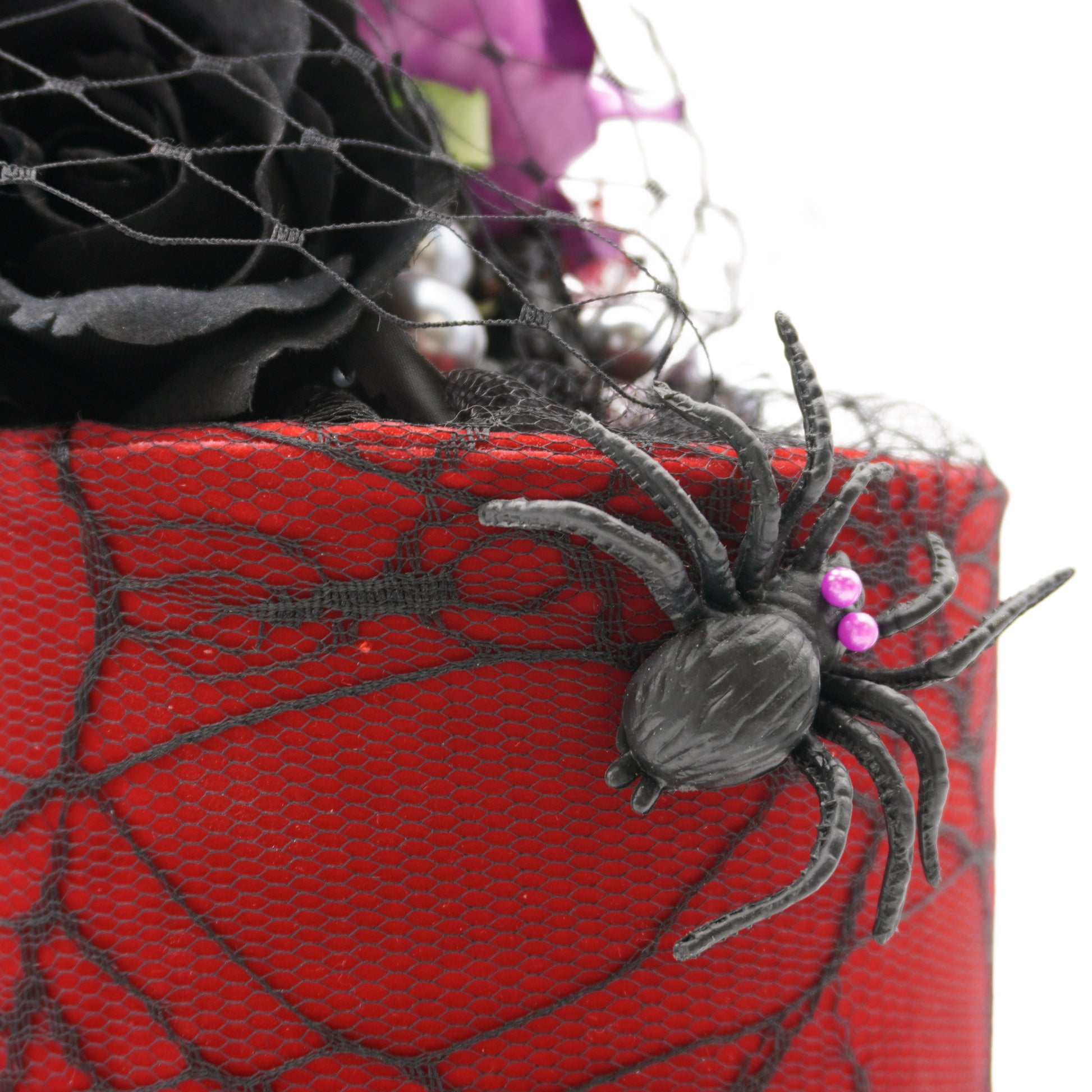 鮮やかなレッドのベルベットをベースに、バラと果実、カスミ草が華やかさを添えつつ黒のレースで装飾されたハロウィン仕様のゴシックデザインなクレイケーキ。大人の気品と優雅さを演出する一方、レースを蜘蛛の巣と見立てて蜘蛛のモチーフを加えた遊び心のある一品です。ハロウィンパーティーのデコレーションや撮影の風景にゴシックさをプラスされたい時におすすめです。<注:この商品は食べられません><注:ドライフラワーは乾燥しているため、散りやすいものや壊れやすい場合がございます。繊細な商品なため飾る場所や季節等により、ご購入後の色の変化や劣化具合は異なります。>