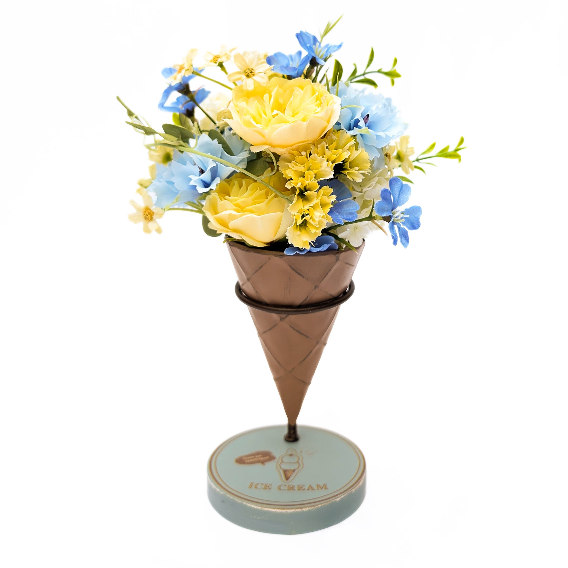 まるでアイスクリームみたい!アイスクリームコーンに入った、可愛らしいアイスクリームブーケは渡しやすいだけでなく、付属のカップホルダーを使えば玄関やカウンターなどに飾ることができるアーティフィシャルフラワーです。ファッショナブル、おしゃれ好き、かわいい小物が好きなお母さまへの贈り物として、自分用としてもSNSの撮影小物としても大変おすすめの逸品です。