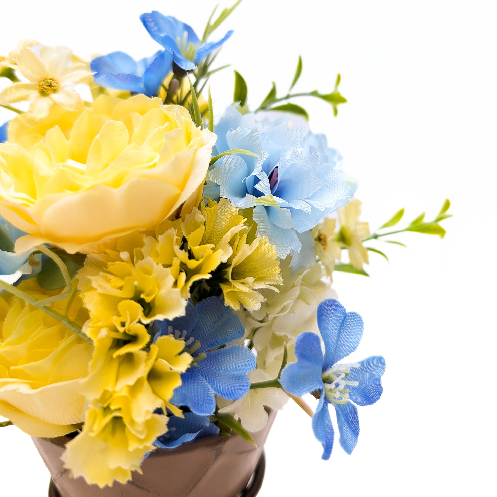 中でもこのブーケは元気を与えてくれそうな艶やかなイエローのバラと、ブルーのスカビオサが上品ながら艶やかです。ミニフラワーであるデイジーやスカビオサはキュートでいて、春の爽やかさを感じさせますね。「いつまでも明るく輝いてほしい」というお母さまへの想いを込めて贈ってみませんか?<注:この商品は食べられません。><付属品:カップホルダー>
