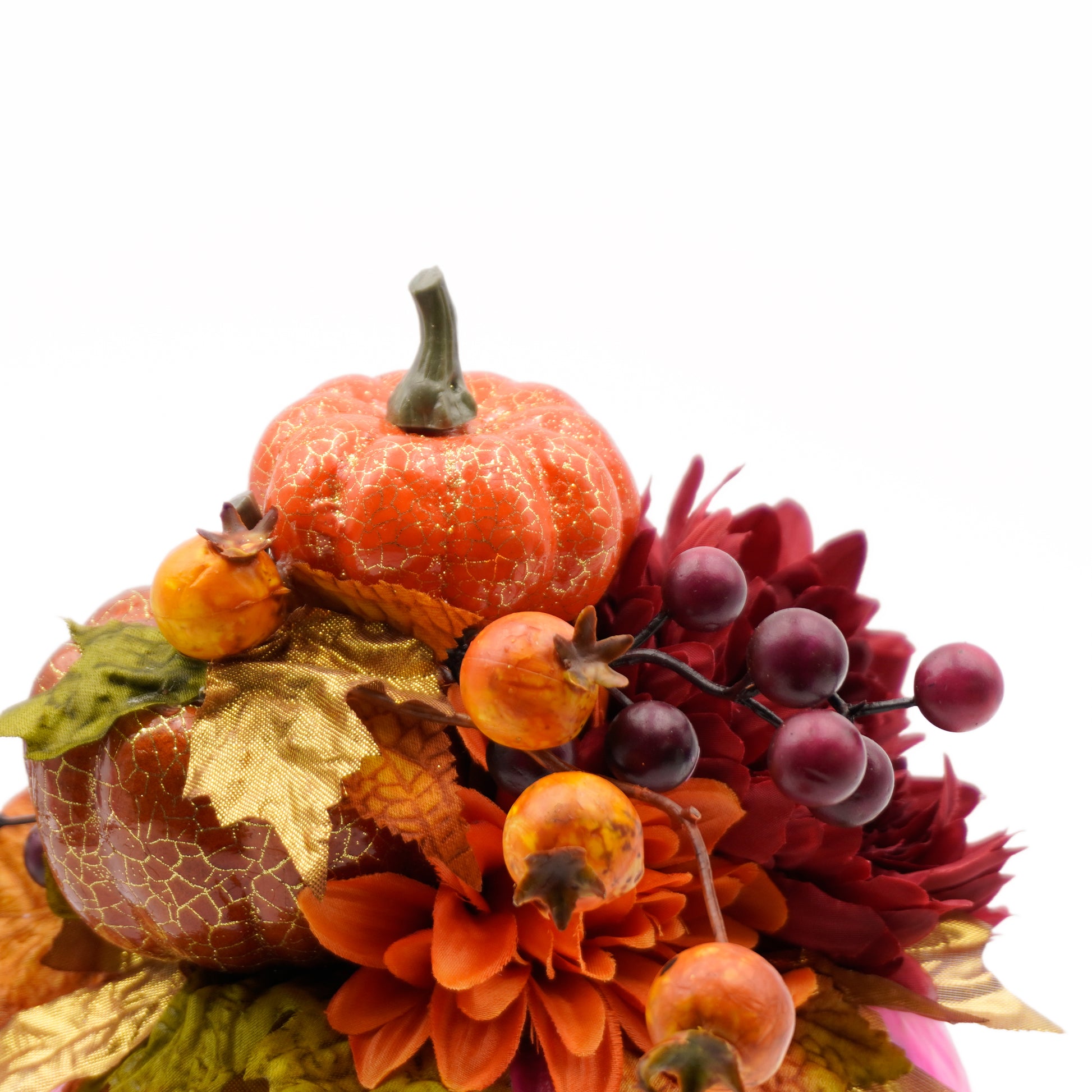 - かぼちゃランタン/花材:造花(かぼちゃ、ベリー、ダリア)