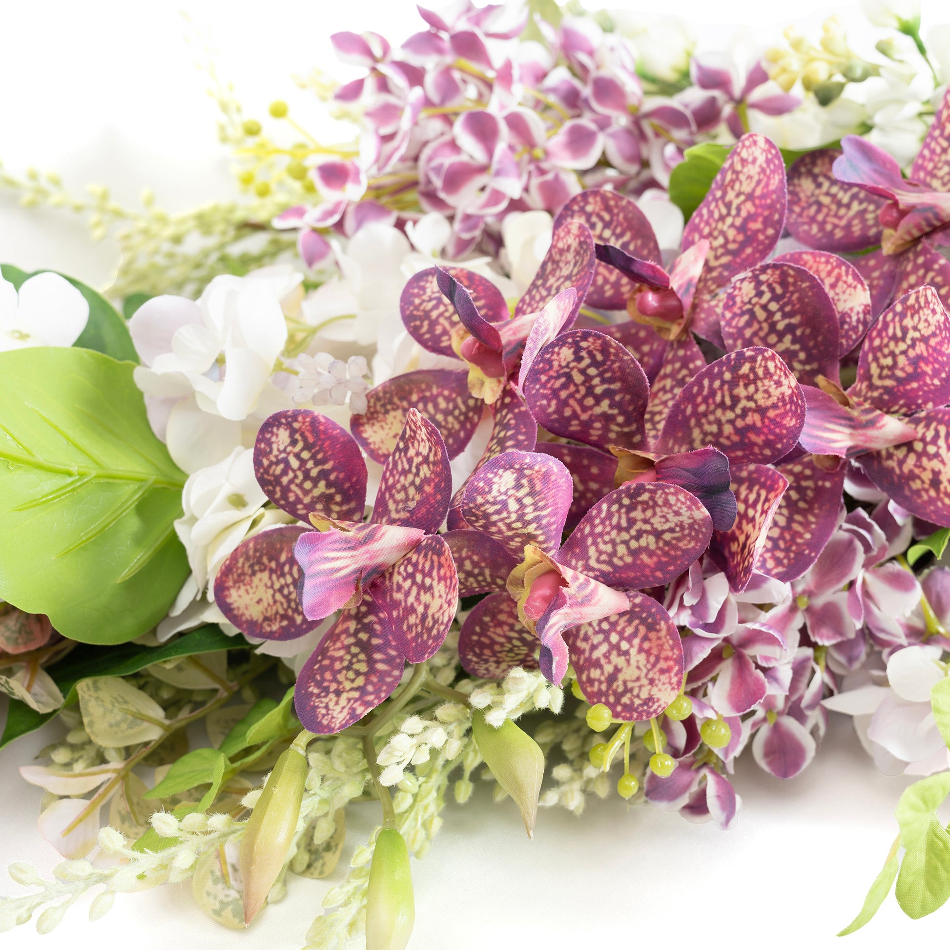 - 花材:デーファレ/あじさい/デルフィニウム 資材:リボン