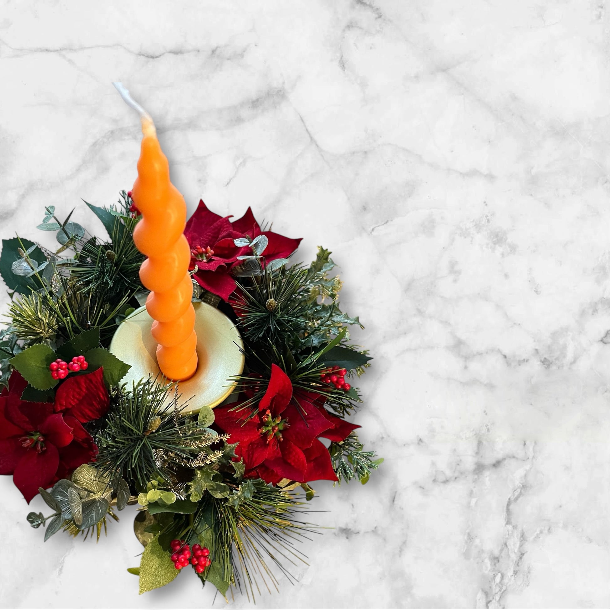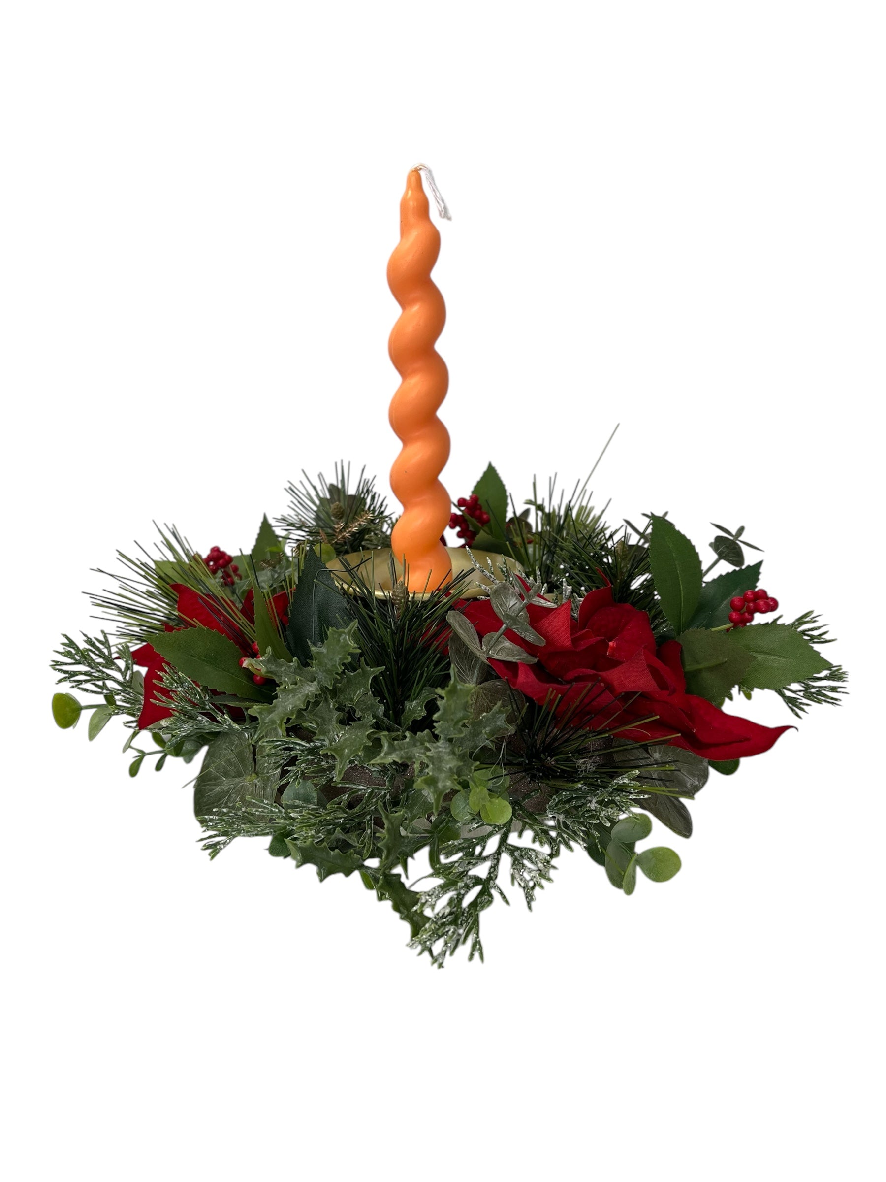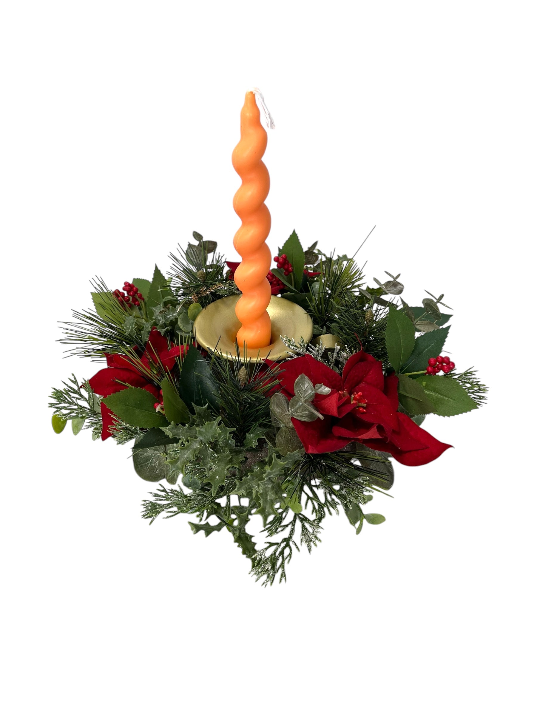 - 花材:ポインセチア・松・柊・ユーカリ デコレーション:キャンドル・キャンドルスタンド