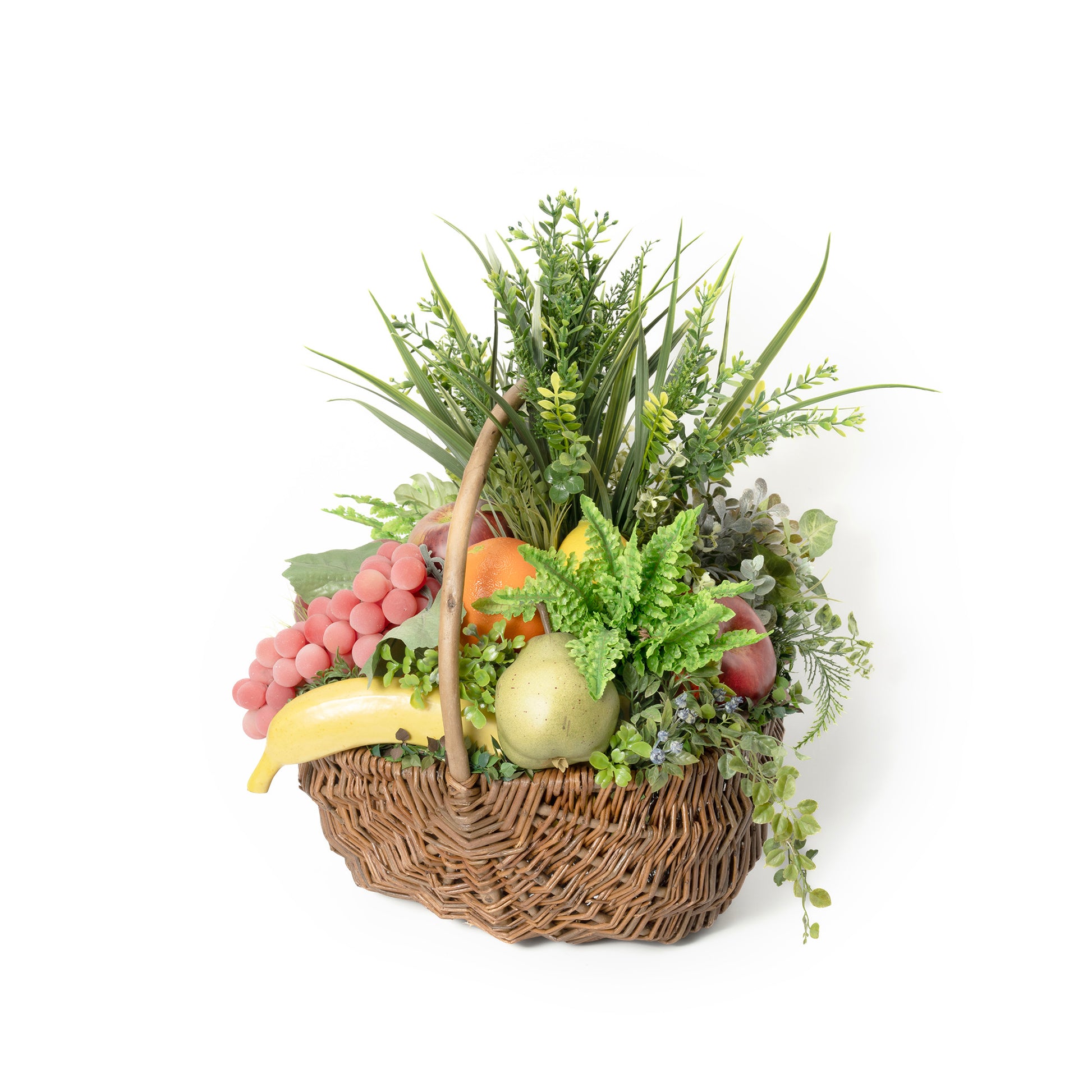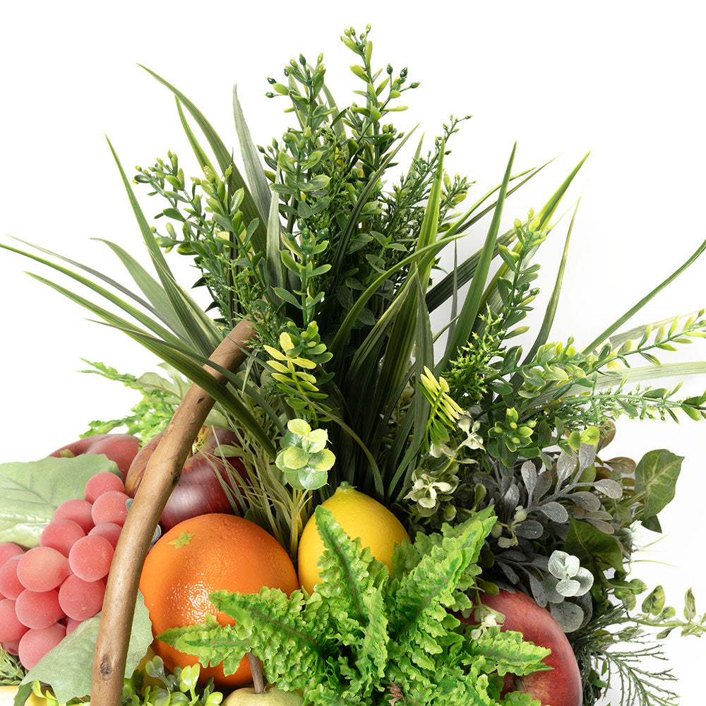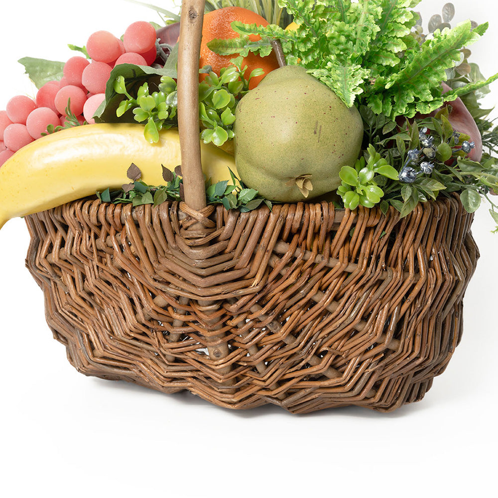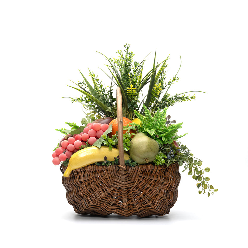 ポップなフルーツと、イキイキとした清潔感を感じさせるグリーンが、空間を華やかに明るく演出。キッチンの目隠しや、空間の隙間を彩るアイテムとしても。また賑わいがあるバスケットタイプなので、プレゼントにもおススメです。