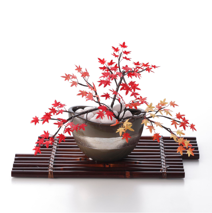 気品漂う秋の季節感を簡単に演出できる和紙のもみじ(紅葉)アレンジメントです。和紙造花にしか出せない凛とした、空間を引き締める厳かな佇まいのおかげで、置くだけで高級感が漂います。小スペースでも季節感を取り入れやすいのも魅力の1つです。プレゼントとしても、お店の空間演出・オフィス・ご自宅で秋を表現したい際にもおすすめです。