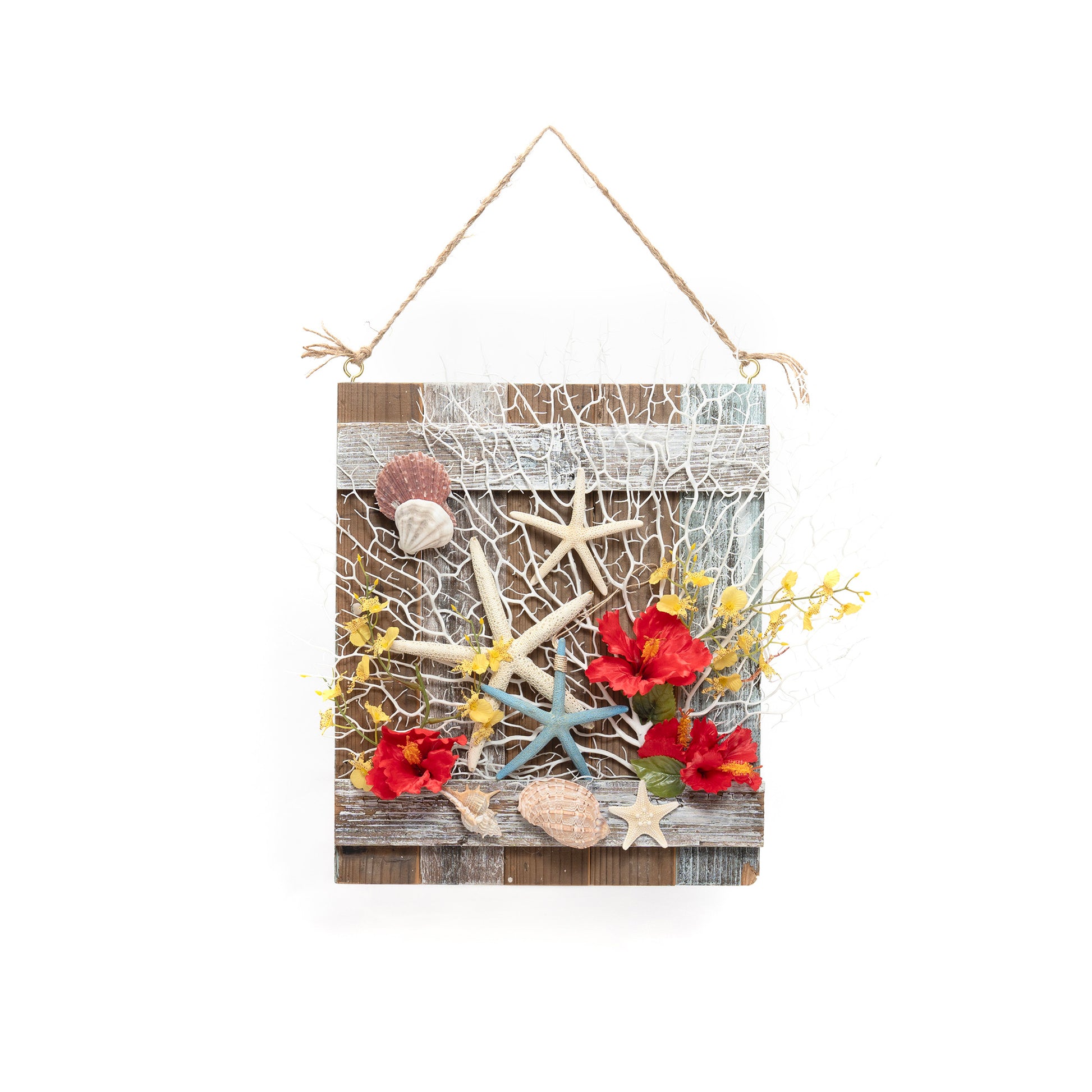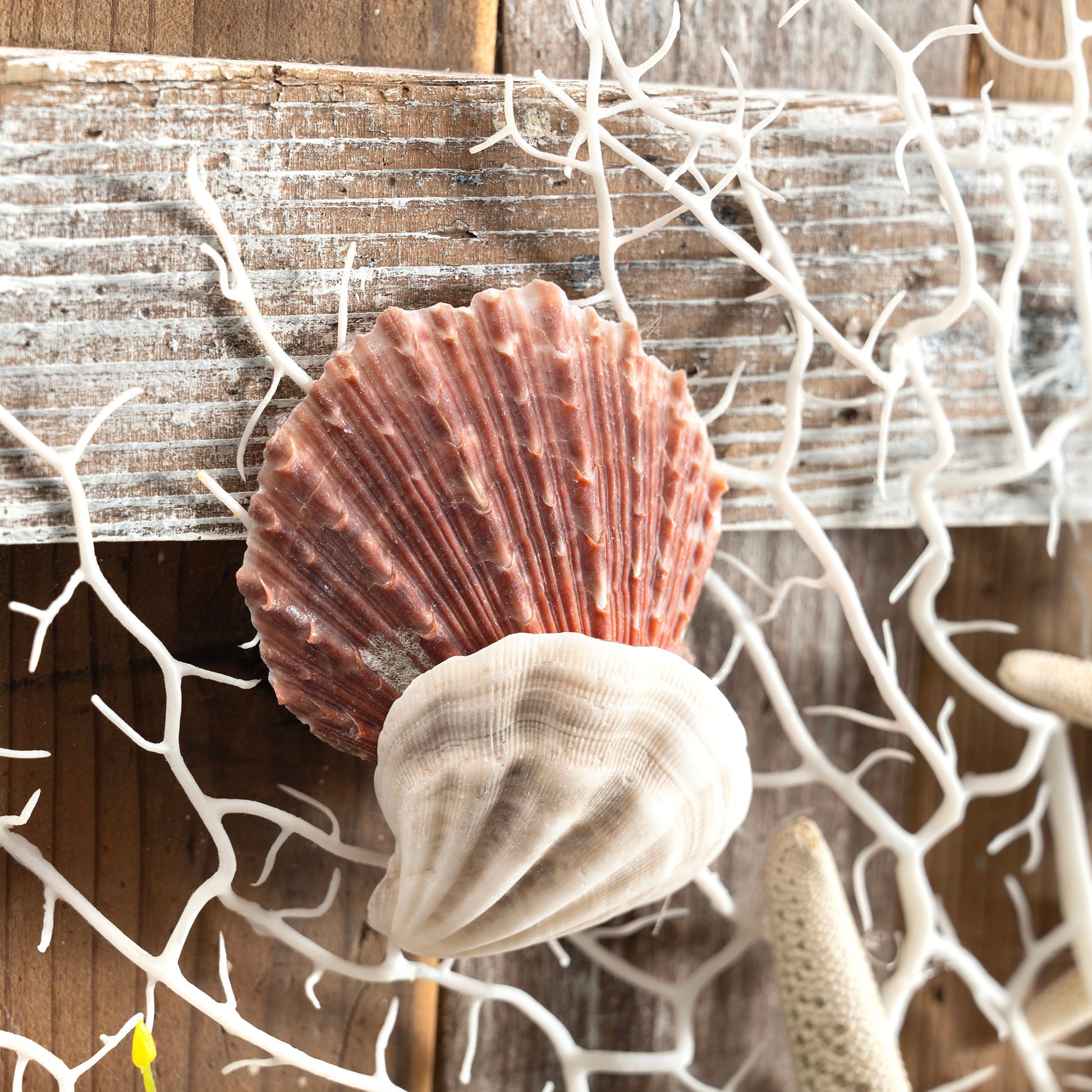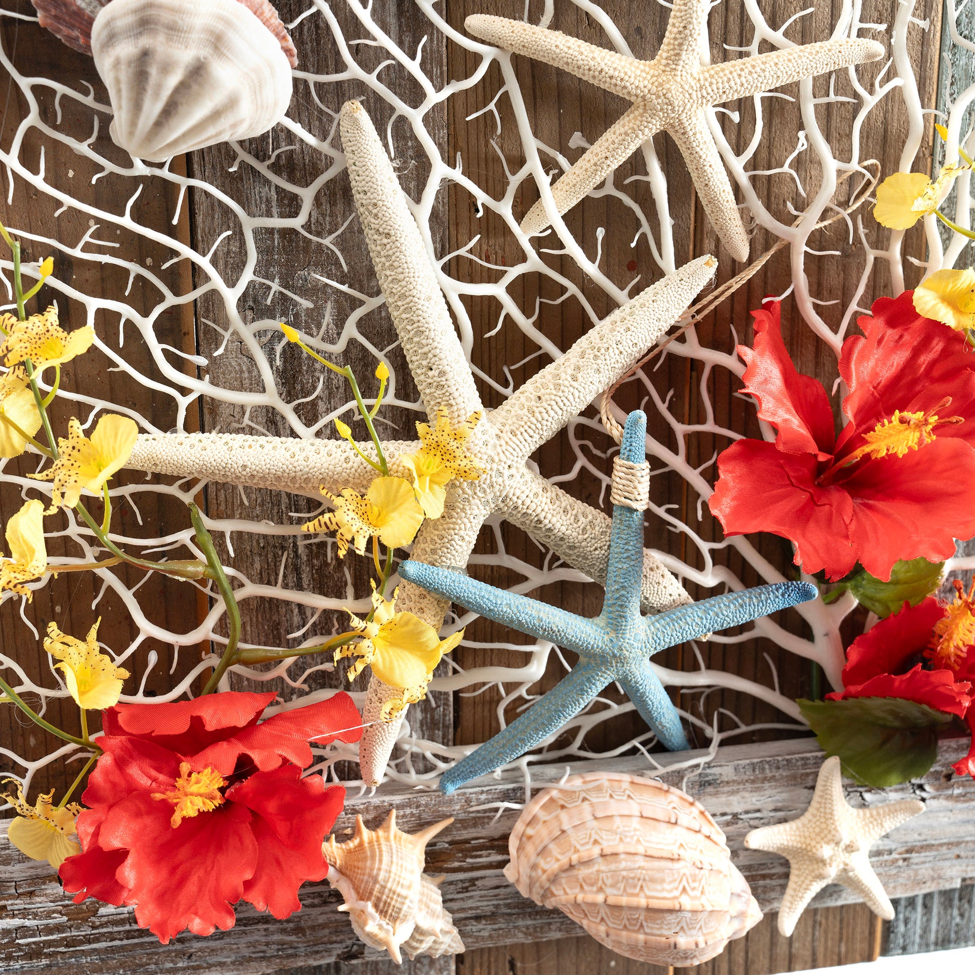 - 花材:造花(ハイビスカス、オンシジューム、サンゴ) ・木材・貝殻