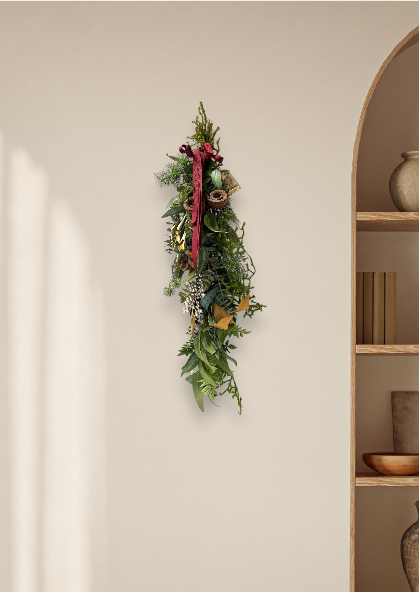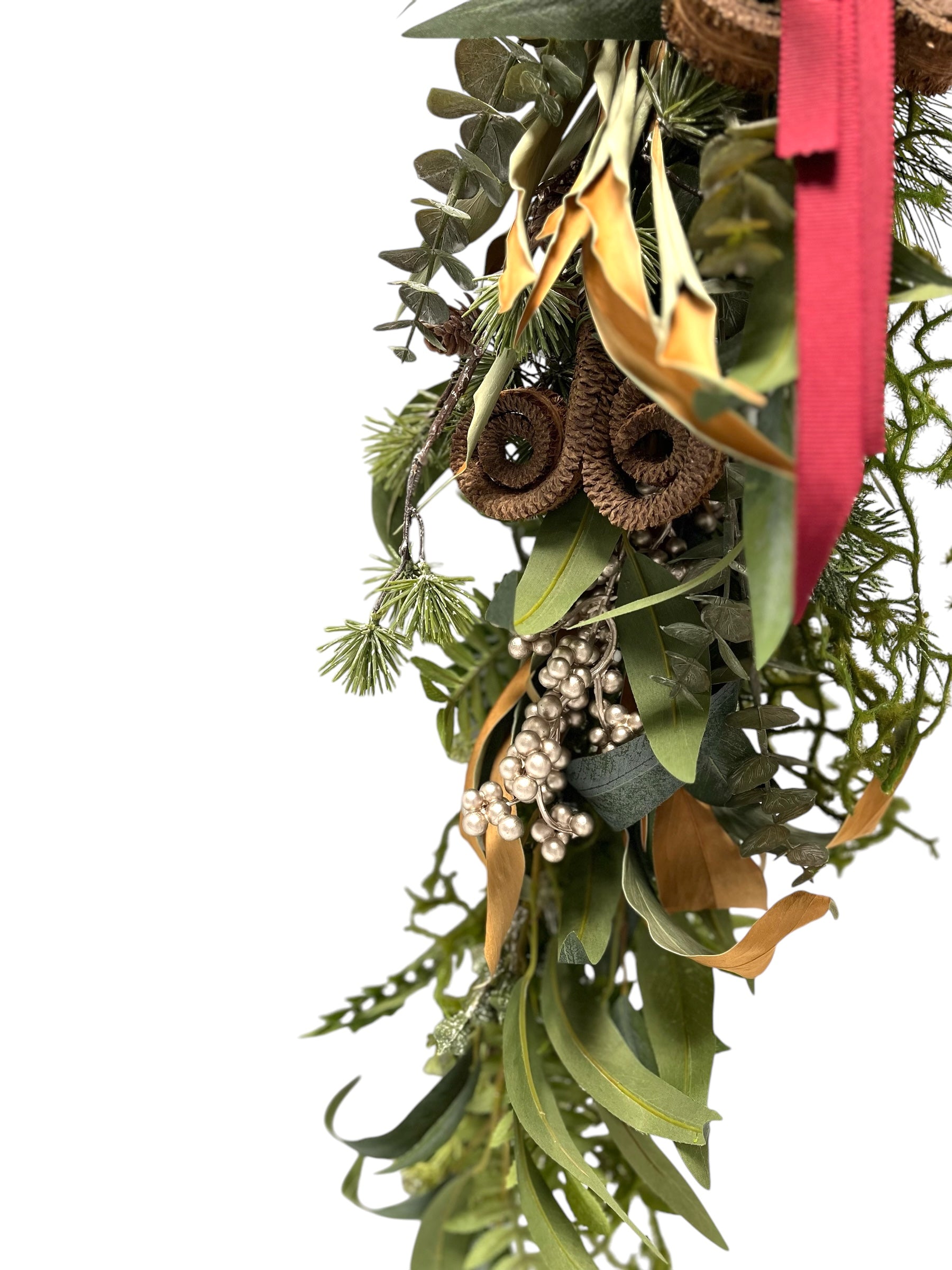 よりナチュラルに仕上げており、クリスマスが終わっても飾っていられる冬のお玄関飾りやお部屋飾りとして ウィンターシーズンの温もりを飾ってみませんか。<注:ドライフラワーは乾燥しているため、散りやすいものや壊れやすい場合がございます。繊細な商品なため飾る場所や季節等により、ご購入後の色の変化や劣化具合は異なります。>