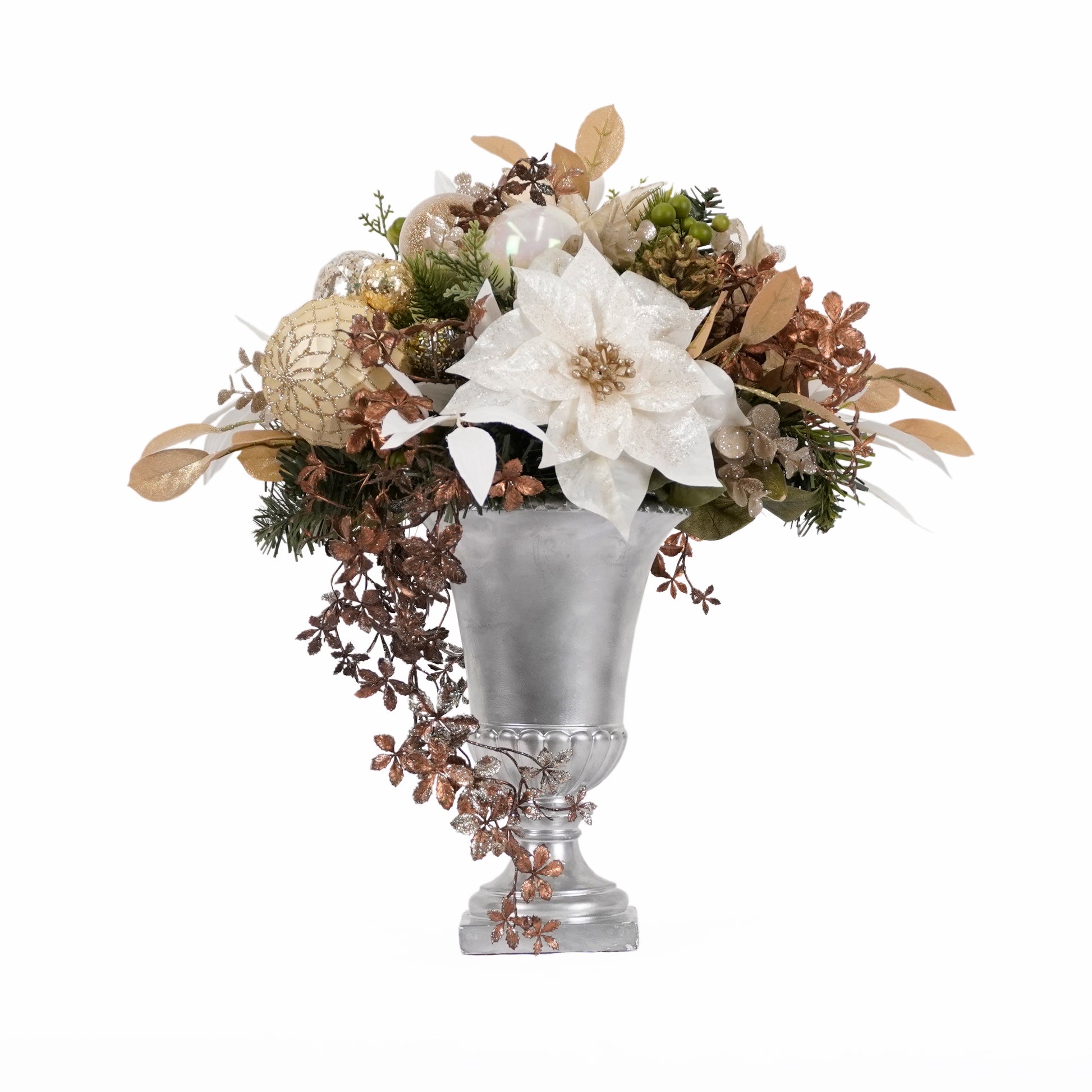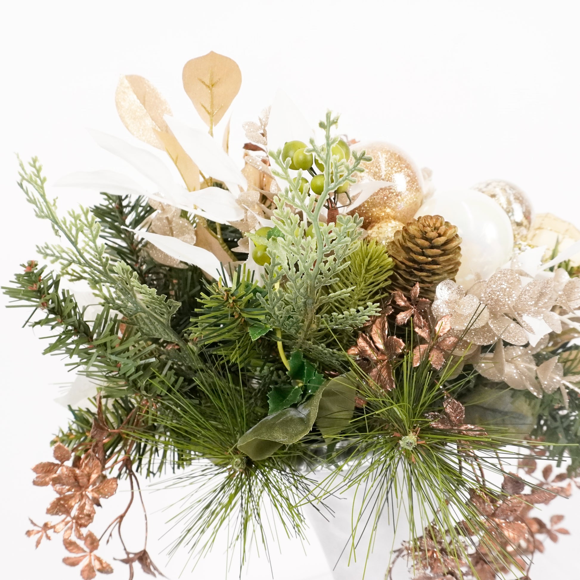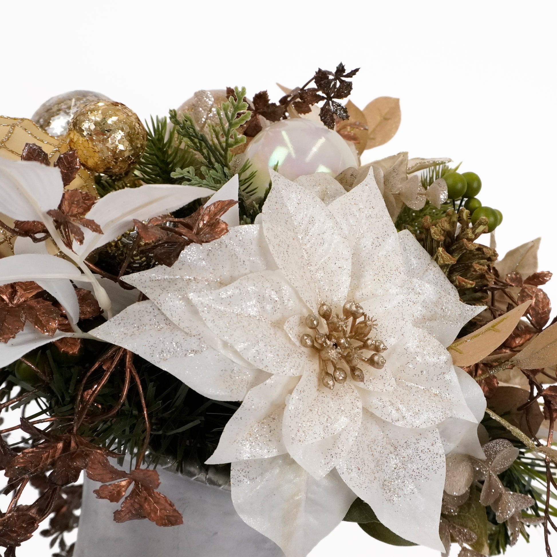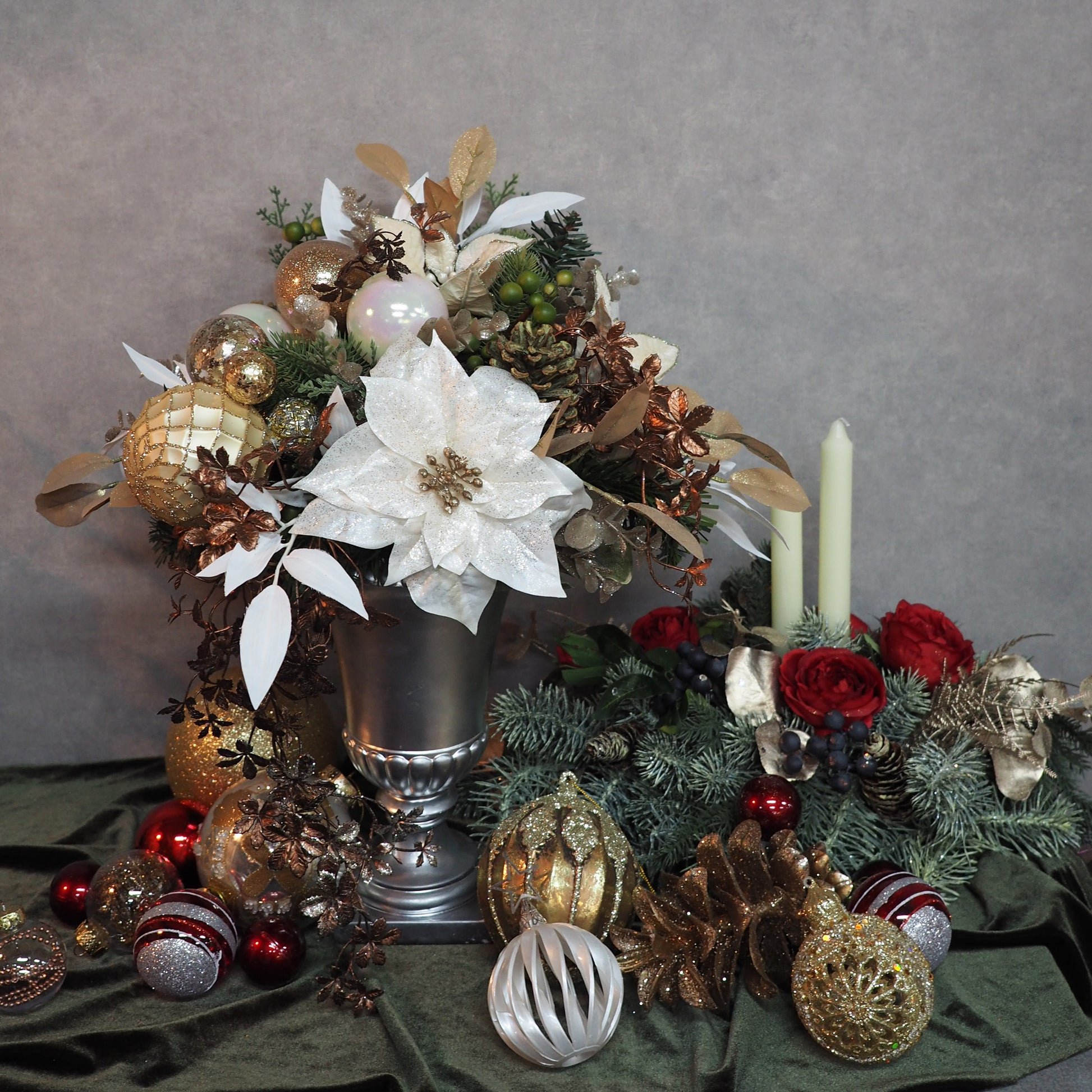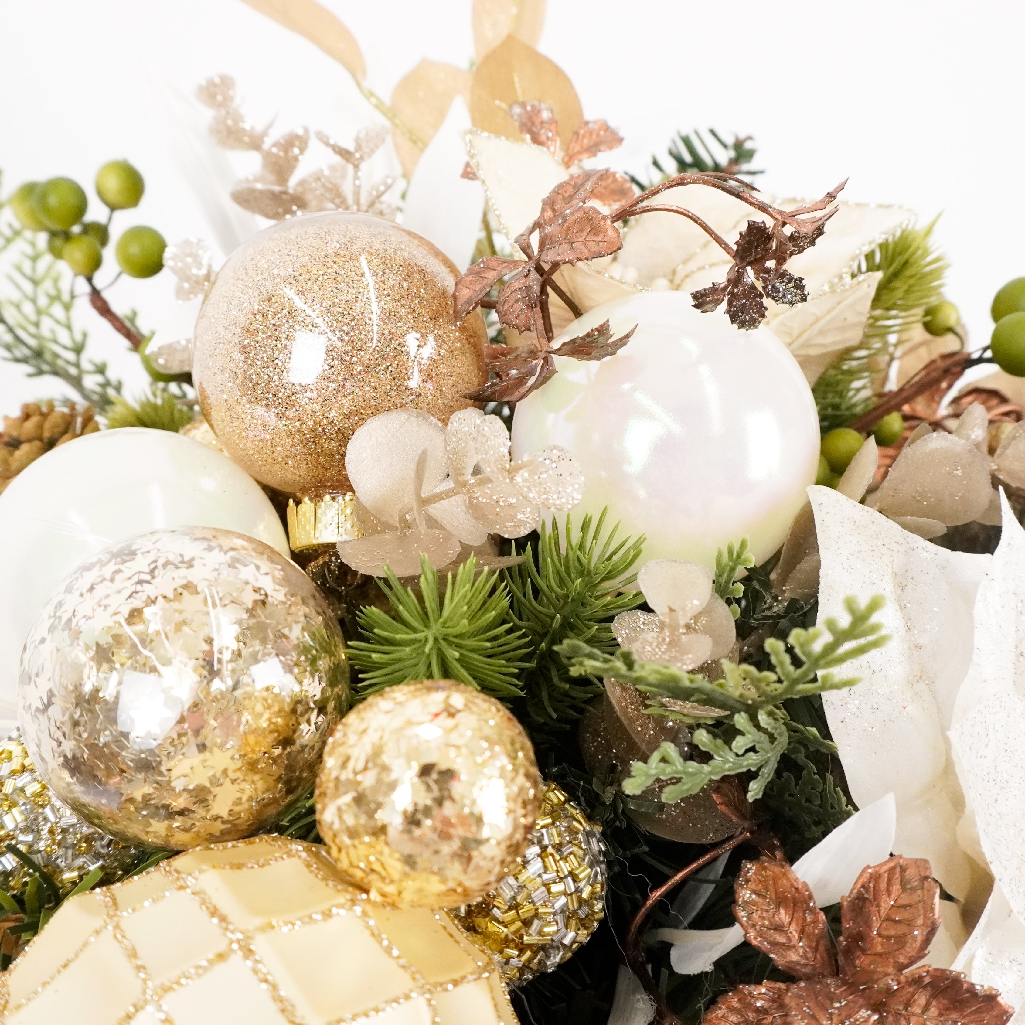 ホリデーシーズンをゴージャスに彩る、ホワイトポインセチアのアレンジメント